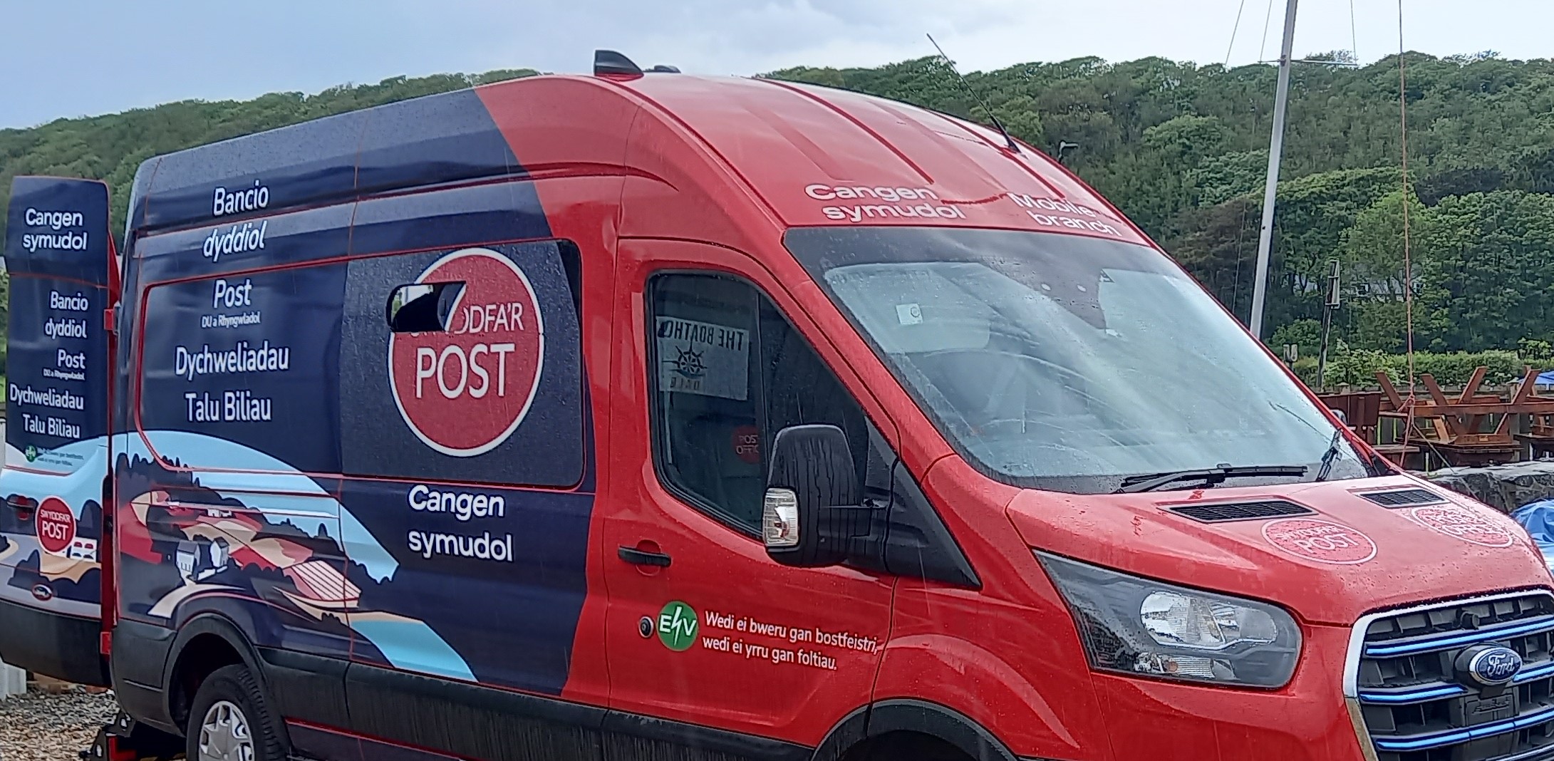 Pembroke Postmaster Mark Wilson and his team operate a Mobile Post Office serving 11 communities in rural Pembrokeshire. He has swapped his previous diesel vehicle for an electric one.