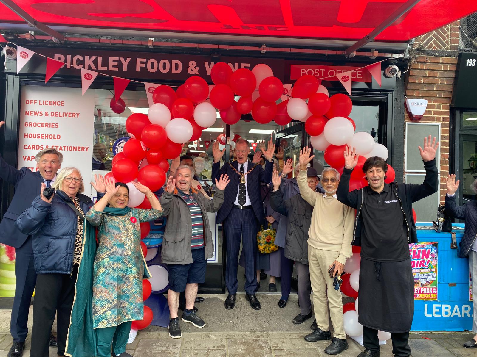 Mayor of Bromley Cllr David Jefferys and Mayoress Ann-Marie Jefferys “cut the ribbon” at the official opening of new Southborough Lane Post Office at a community celebration with free refreshments.