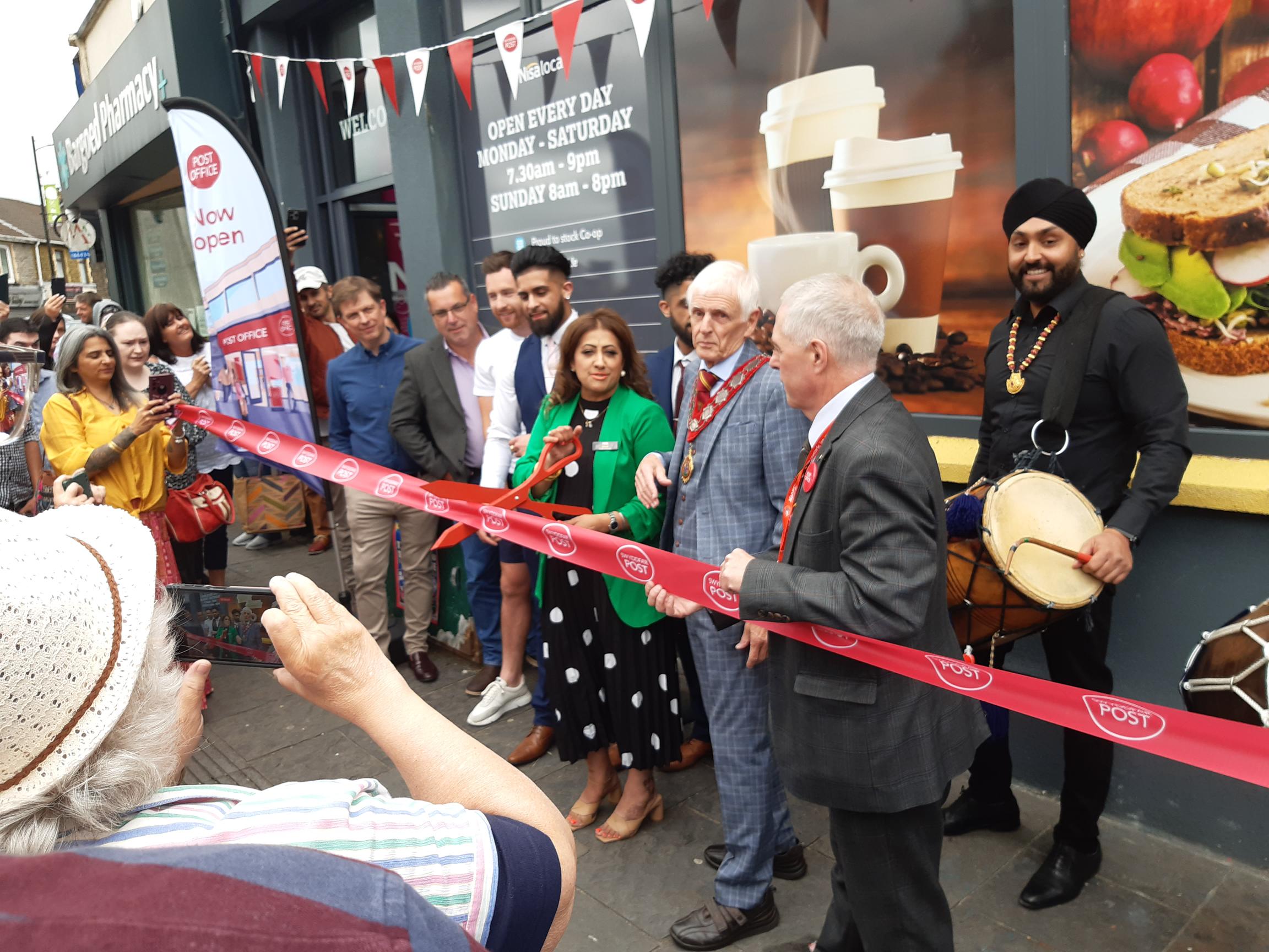 Mayor of Bargoed, Cllr Howard Llewelyn “cut the ribbon” today (28/6) at the official opening of the recently refurbished Bargoed Post Office.