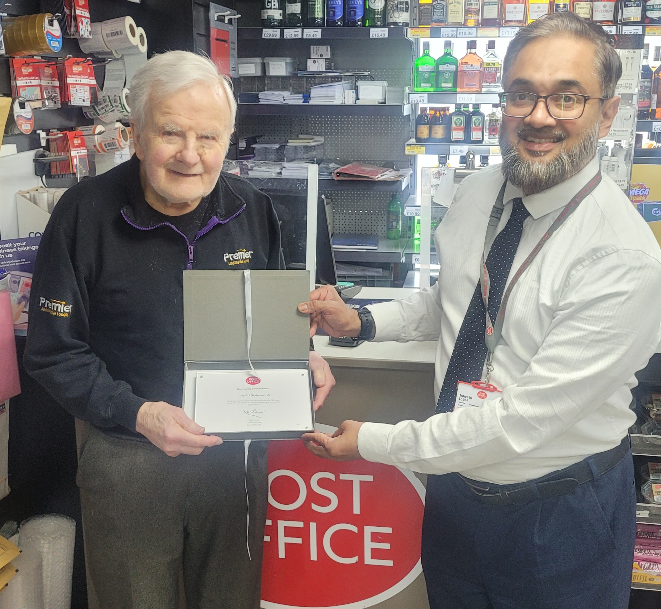A Post Office 30 Years’ Long Service Award has been presented to Bob in appreciation of his important role in the community.