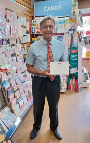 Post Office Area Manager, Thakoor Maraj, said: “I really want to really thank Mahesh for the 1st class Post Office service that he has provided to his community for the past three decades as postmaster along with his wife Brigitte who has run the shop throughout. The couple are highly regarded in the community. Whilst presenting the long-service award many customers wanted to congratulate Mahesh for all that he does for the people of Upper Dovercourt.”