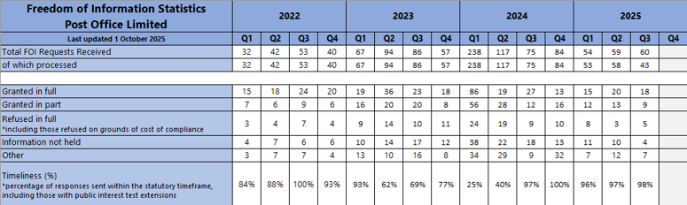 | FO12025/00765 | FOi - Voice of the Postmasters Committee Payments | 19/11/2025 | Granted in full |